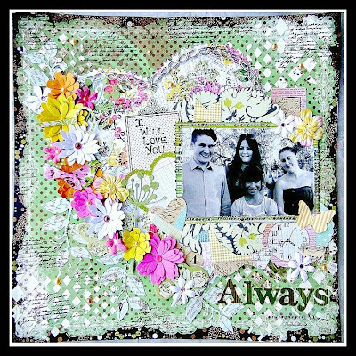 I love your layout Lizzy! The background is such a beauty and all those handmade flowers... very impressive! It's sad about Bird is the Word, uh? Maybe someone else will decide to take it on. I wish i felt like i had the time and motivation as i think it would be fun, but i have enough on my plate as it is. Let's keep our fingers crossed.